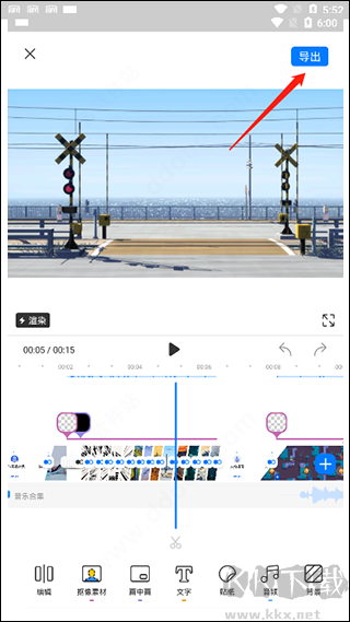 2、接著選擇好視頻后就會加載進(jìn)入到視頻剪輯編輯功能中,在下方為用戶提供了編輯、摳像素材、畫中畫、文字等各種功能;