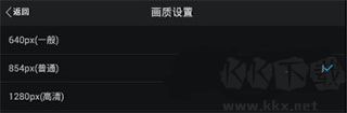 3、在“畫(huà)質(zhì)設(shè)置”界面中,選擇自己需要的畫(huà)質(zhì)(640px、854px、1280px)即可。