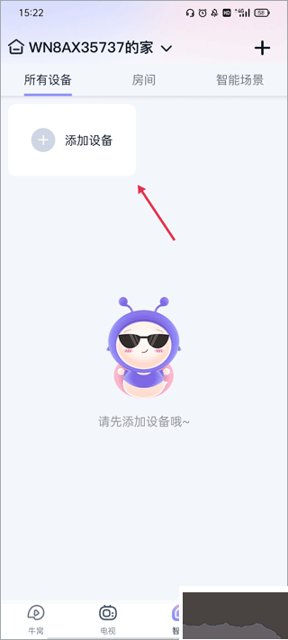 2、在“智家”界面最上面,有個“添加設(shè)備”的按鈕,點它。