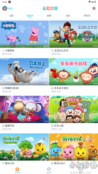 原創(chuàng)多多兒歌動畫+熱門經(jīng)典動畫,包含小豬佩奇、汪汪隊等超人氣IP。豐富視聽內(nèi)容既寓教于樂,又開闊寶寶視野,陪伴快樂成長。