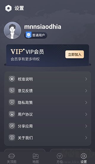 用戶(hù)在方位頁(yè)面可以查看自己當(dāng)前的方向位置以及經(jīng)緯度,點(diǎn)擊右上角瞄準(zhǔn)圖標(biāo)可以進(jìn)行水平校準(zhǔn)。