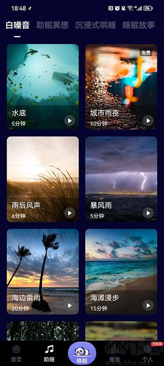 用戶在助眠界面可以選擇多種多樣的助眠音樂,幫助用戶快速入睡。