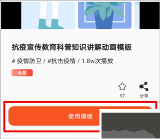 2、選擇想要的模板后可以看到預(yù)覽界面,點擊【使用模板】即可進入編輯器做視頻啦