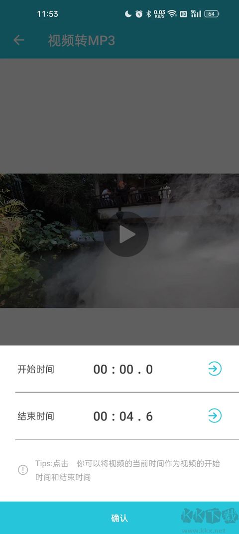 6、還能截取視頻中的某段音頻,設(shè)置好時間后直接提取保存