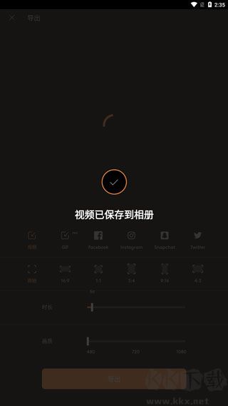2、選擇導(dǎo)出的視頻時長,畫質(zhì)等;