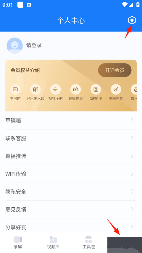 1、打開EV錄屏手機版,點擊我的-右上角設置;