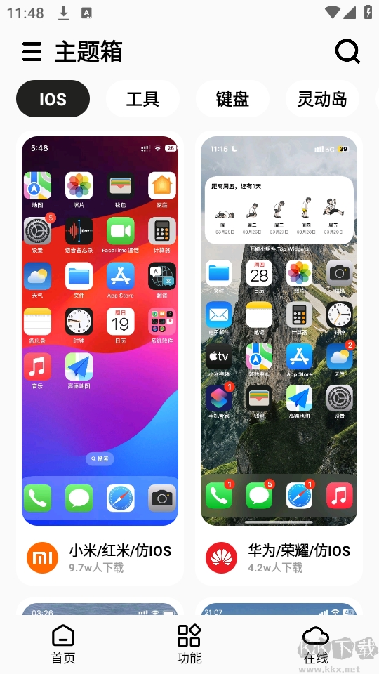 2、首頁支持下載并更換為iOS風(fēng)格主題