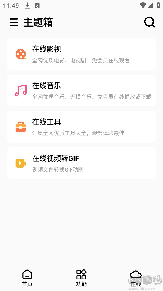 5、在"在線"頁面可收聽音樂、觀看影視,并支持格式轉(zhuǎn)換等功能
