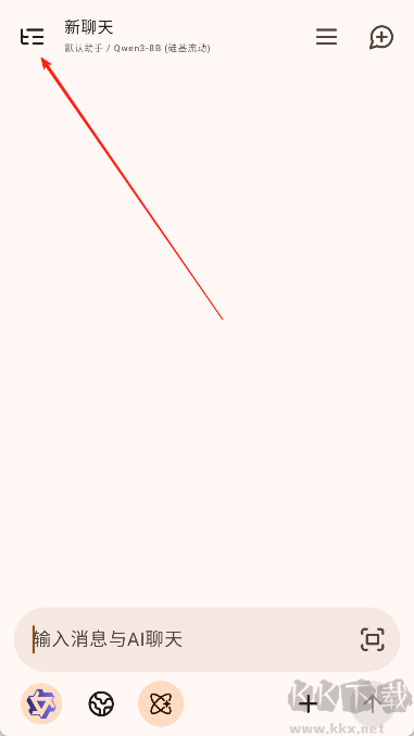 1. 啟動RikkaHub應(yīng)用,點(diǎn)選左上角按鈕展開側(cè)邊欄。