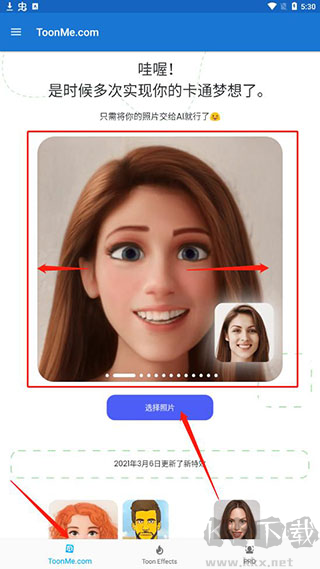 1、在toonme.com界面左右滑動(dòng)選取心儀的畫面效果。