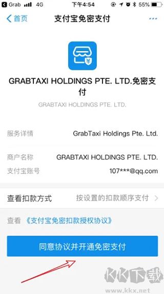 5、跳轉(zhuǎn)到支付寶免密支付的頁面后,點下方的 “同意協(xié)議并開通免密支付”。