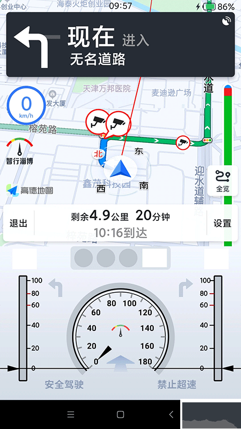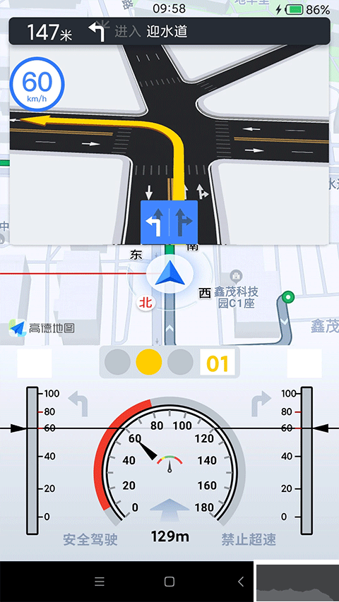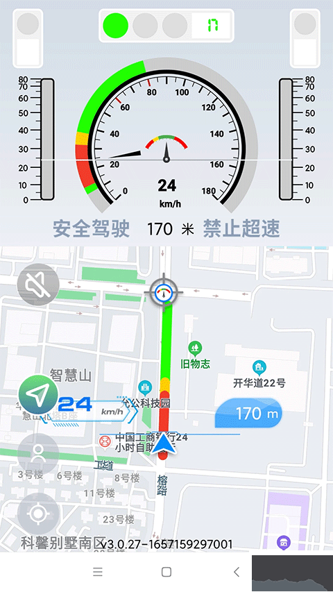 3、主界面分為車速引導(dǎo)和地圖區(qū)域,行駛時可查看路口信號燈狀態(tài)。
