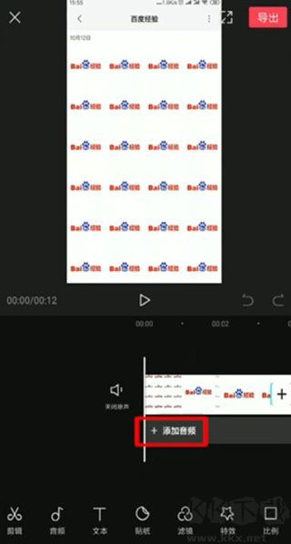 4、拖動音頻視頻,點擊左下角的“剪輯”,選擇切割,然后根據(jù)自己的需要剪輯音樂即可。