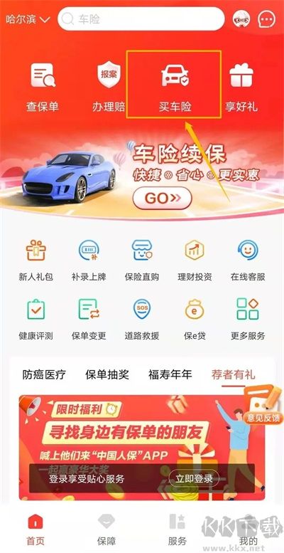2.首頁(yè)中選擇“買車險(xiǎn)”功能