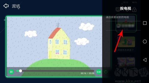4、播放窗口縮小后,選擇“TV”圖標,系統(tǒng)將自動搜索可用電視設(shè)備,點擊電視名稱即可完成投屏。