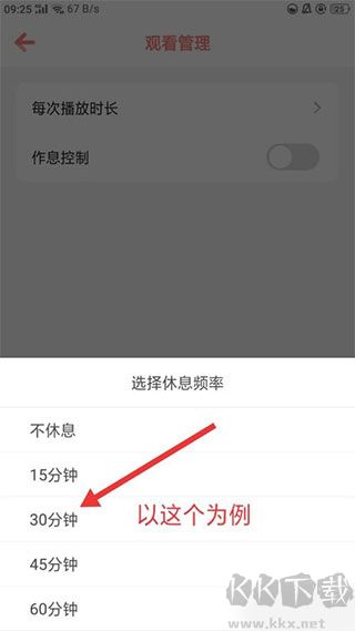 4、在彈出的時長選擇框中,以30分鐘為例,選中該選項。