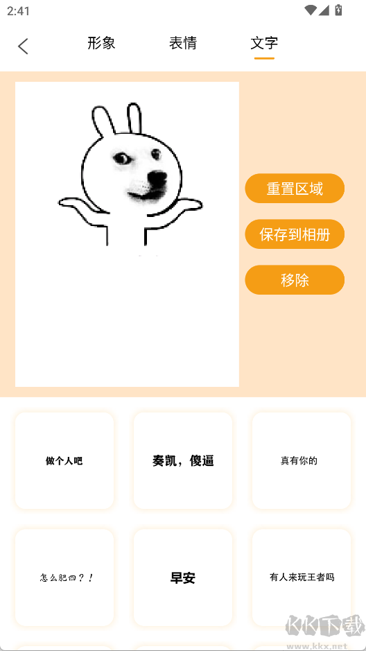3、表情制作坊:隨意組合貼紙與文字,生成專屬于你的聊天表情。