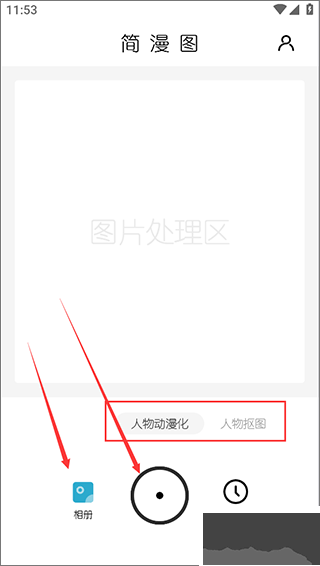 主頁即為功能頁,選擇人像動(dòng)漫化或摳圖后,可直接拍攝或?qū)胝掌M(jìn)行處理,減少多層跳轉(zhuǎn)。