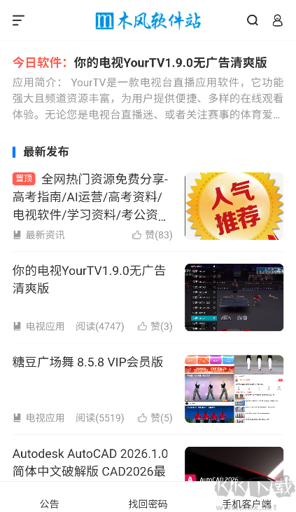木風軟件站APP是木風軟件站推出的手機客戶端,作為一個值得體驗的應用平臺,它幫助用戶便捷地獲取各種所需要的軟件。平臺資源極為豐富,無論是安卓應用還是電腦游戲都可找到,堪稱一站式軟件資源庫。木風軟件站為每個軟件提供詳細說明,讓用戶清晰了解應用功能與特點。下載方式也十分簡便,只需點擊對應下載鏈接即可完成,平臺具備高度安全性,無需擔心病毒或惡意程序威脅。