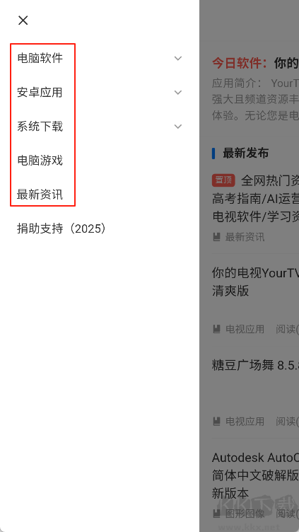 2、輕觸左上角更多選項,可按分類需求瀏覽資源。