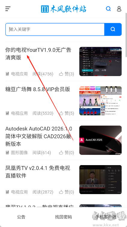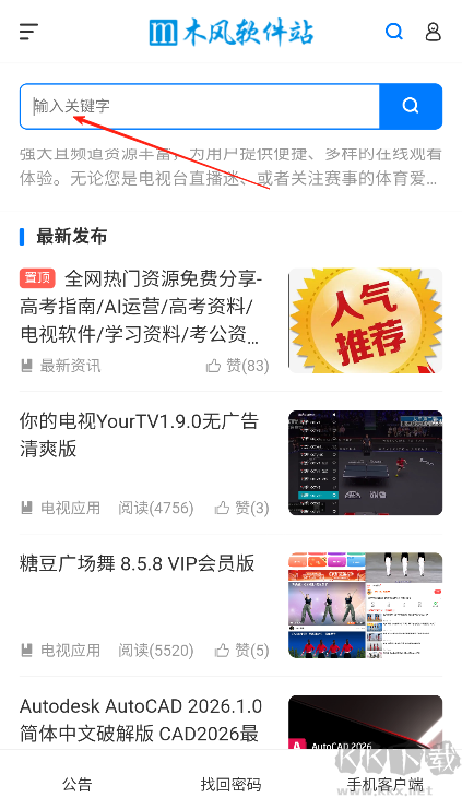 1、在移動設備上啟動木風軟件站應用,進入主界面。