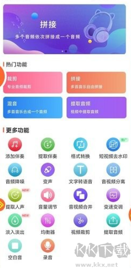 1、音頻合并,可將用戶喜愛的兩段音頻進行合并處理,制作串燒作品。