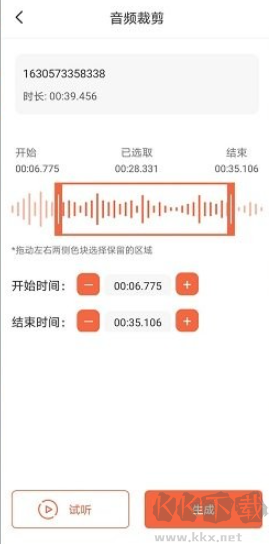 2、用戶可從本機媒體庫導入音頻,進行自定義范圍裁剪。