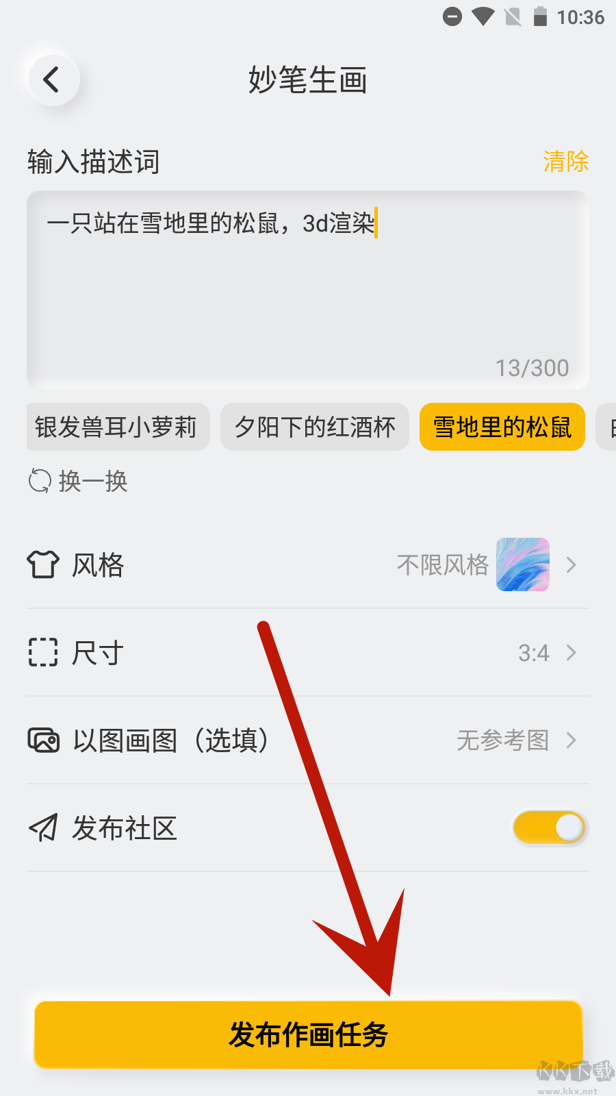 4、輸入想要生成畫面的文字描述,選擇“發(fā)布任務”。