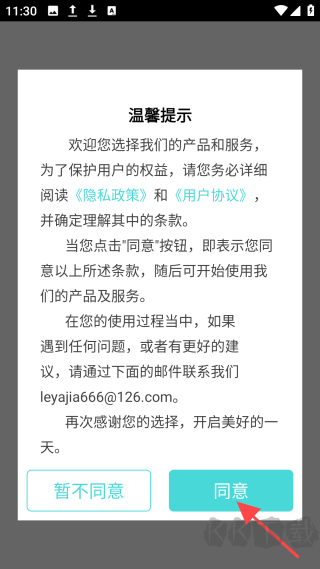 1、完成安裝后,授權(quán)并打開應(yīng)用,閱讀并同意相關(guān)提示。