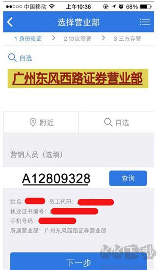 2、選擇營業(yè)部,既可挑選附近營業(yè)部,也可自行查找指定營業(yè)部及對應營銷人員。