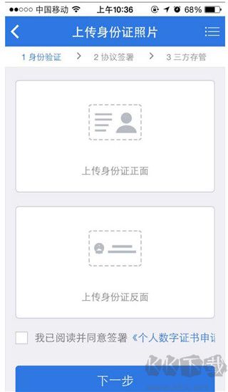 3、拍攝并上傳身份證正反面照片。注意避免反光或圖像模糊。