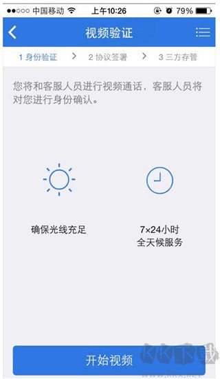 5、完成視頻驗證。為確保為本人操作,可選擇單視頻或雙視頻驗證方式,按界面提示完成認證。