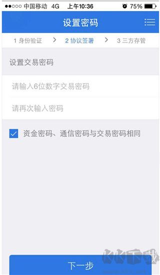 7、設置資金密碼、通信密碼及交易密碼,系統(tǒng)默認三項密碼一致。