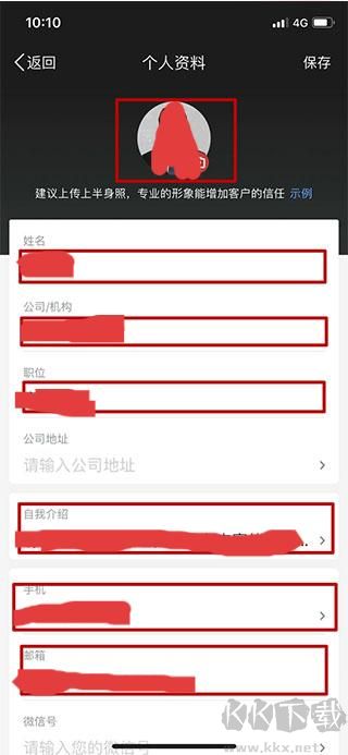 第四步,上傳頭像圖片(該圖片將用于個(gè)人名片),接著填寫姓名、服務(wù)機(jī)構(gòu)、職務(wù)、個(gè)人簡(jiǎn)介與聯(lián)絡(luò)方式等資料,便于客戶聯(lián)系;