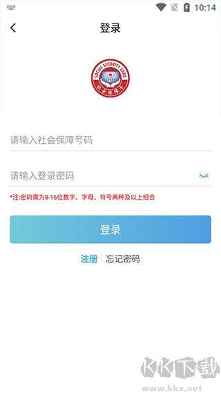 2、輸入社??ㄌ?一般為身份證號)和登錄密碼。如為首次使用,可注冊并通過人臉識別設(shè)置密碼;