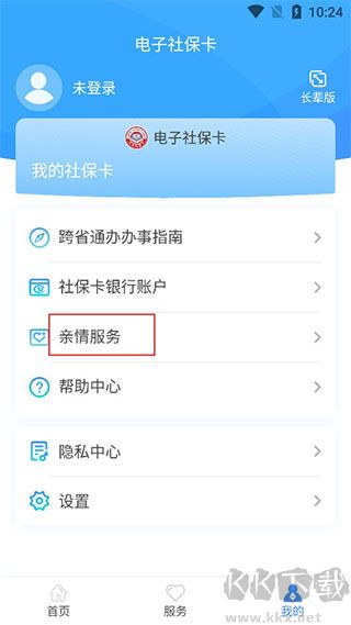 3、登錄后進入“我的”頁面,開啟“親情服務(wù)”;