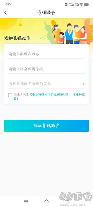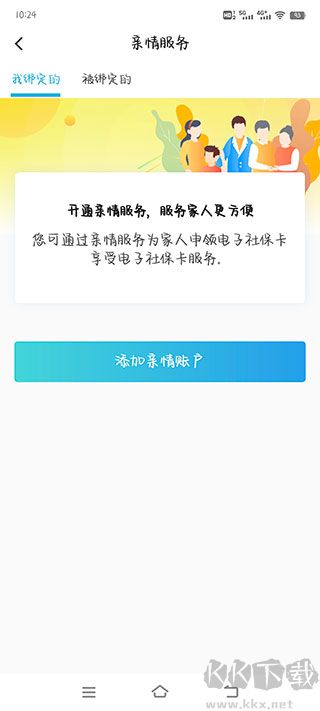 4、選擇“添加親情賬戶”,已綁定的賬戶可查看對應(yīng)家人的電子社保卡信息;