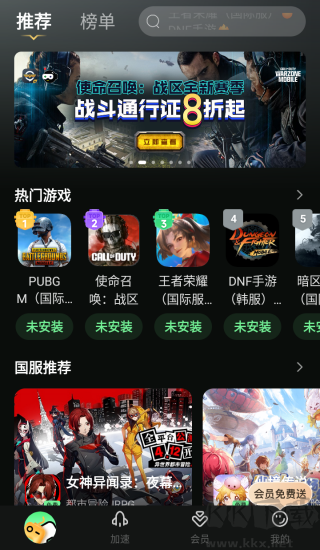 支持PUBGM、王者榮耀國(guó)際版、使命召喚戰(zhàn)區(qū)、星際戰(zhàn)甲國(guó)際服、爐石傳說(shuō)國(guó)際服、暗區(qū)突圍國(guó)際版、飛機(jī)大廚、對(duì)峙2、云頂之弈、鵝鴨殺、賽馬娘、PUBG2、暗黑破壞神:不朽、Apex手游、二之國(guó)、全境封鎖手游、戰(zhàn)地手游、瓦羅蘭特手游、絕地求生:刺激戰(zhàn)場(chǎng)全球服、使命召喚手游全球服、八方旅人、符文大地傳說(shuō)、Among Us、游戲王、方舟:生存進(jìn)化、黎明殺機(jī)、公主連結(jié)、冒險(xiǎn)島M、地球末日生存、Teon中文版、劍靈:革命、戰(zhàn)爭(zhēng)機(jī)器人、地牢獵手5、FIFA、碧藍(lán)幻想全球服、Iron Force、世界計(jì)劃、多彩舞臺(tái)、第七史詩(shī)(Epic 7)、和平精英全球服、堡壘之夜、FGO、影之詩(shī)、失落龍約、黑色沙漠、文明重啟全球服、荒野亂斗、狂野飆車(chē)9等游戲的加速。應(yīng)用內(nèi)收錄超千款游戲,熱門(mén)與新作排行清晰呈現(xiàn),平均每日新增3款游戲。用戶可隨時(shí)提交希望游玩的游戲,我們將盡力實(shí)現(xiàn)兼容。