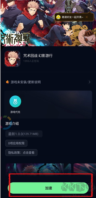 1、選擇目標(biāo)游戲并開(kāi)啟加速(此處以咒術(shù)回戰(zhàn)為例);