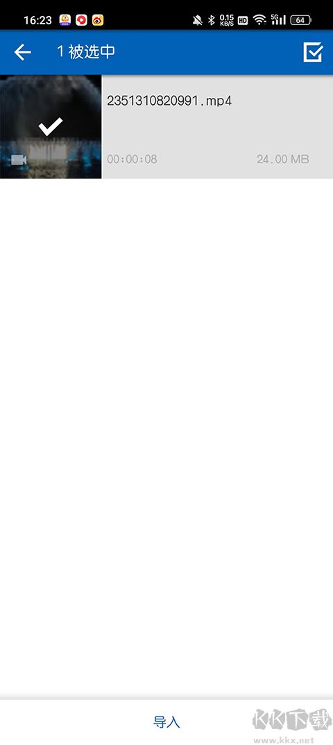 3、選擇完畢后,點(diǎn)擊界面右上角的導(dǎo)入按鈕,即可完成視頻的添加。