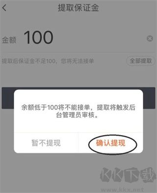 3、在保證金頁面中選擇“提取”。請(qǐng)注意,提取保證金后將無法接單,如需再次接單需重新繳納;