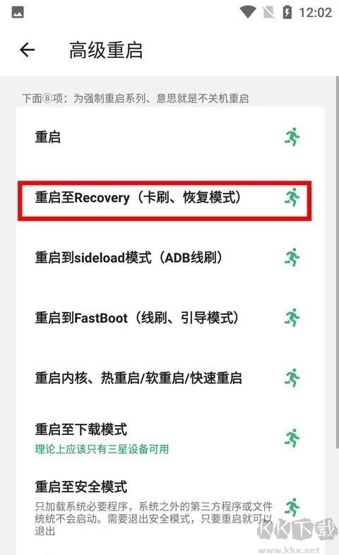 支持重啟到恢復(fù)模式、引導(dǎo)模式、下載模式、安全模式、重啟至9008、關(guān)機、重啟SystemUI界面