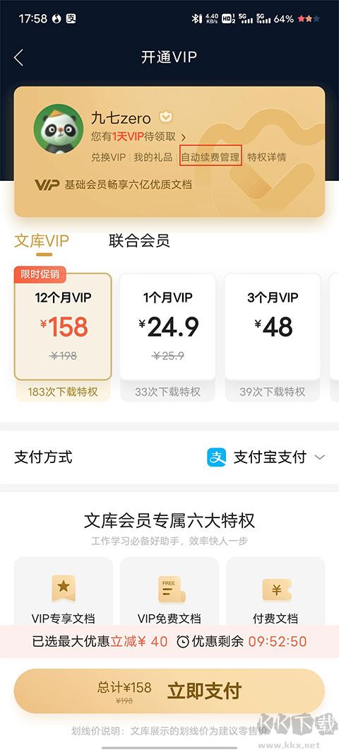 2、進入VIP開通界面,點擊“自動續(xù)費管理”;