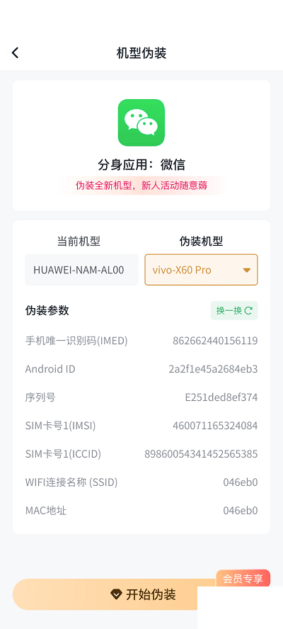 3、如需機(jī)型偽裝,可進(jìn)入相應(yīng)選項(xiàng)選擇目標(biāo)機(jī)型;