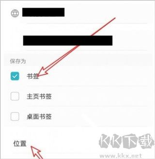 3、之后會(huì)跳轉(zhuǎn)至“編輯書簽”界面,選擇存儲(chǔ)為“書簽”,再點(diǎn)選“位置”快速鏈接即可完成。