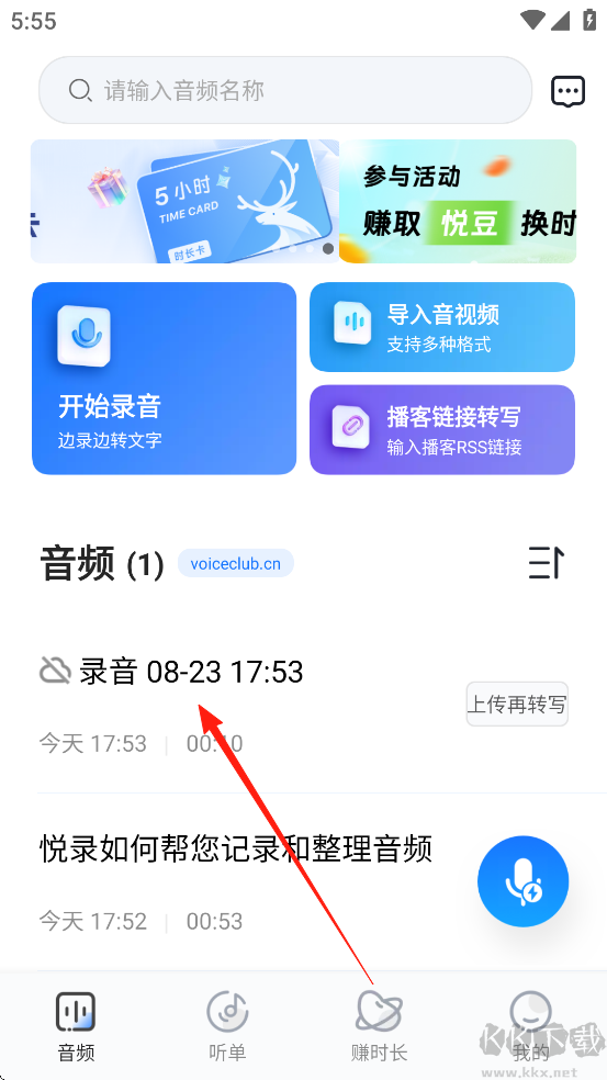 1、打開悅錄App,登錄之后,點(diǎn)擊要轉(zhuǎn)寫的音頻