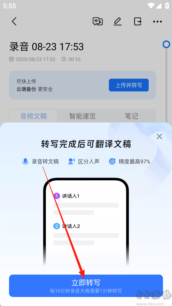 3、然后點(diǎn)擊【立即轉(zhuǎn)寫】