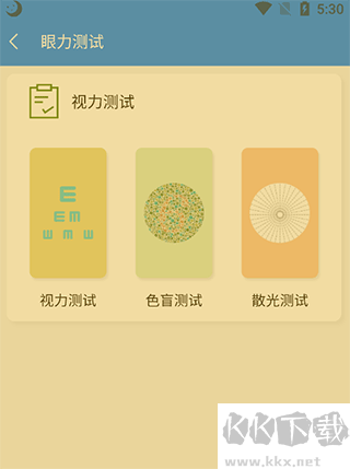 4、最后給大家介紹一個最為有趣的功能,可以對自己的眼力進行,在里面可以選擇視力測試、色盲測試、散光測試