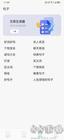 2、進(jìn)入“句子”頁(yè),選擇文章生成功能;