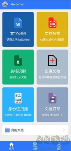 1、啟動(dòng)文件掃描打印王應(yīng)用,主界面顯示文檔掃描、文字識(shí)別、表格提取、身份證掃描等多種功能入口;